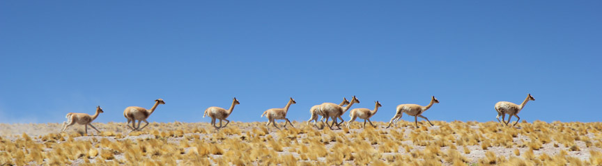 Photo par Benoît Lavigne. Troupeau de vicuñas dans la cordillère des Andes, Chili, décembre 2010.